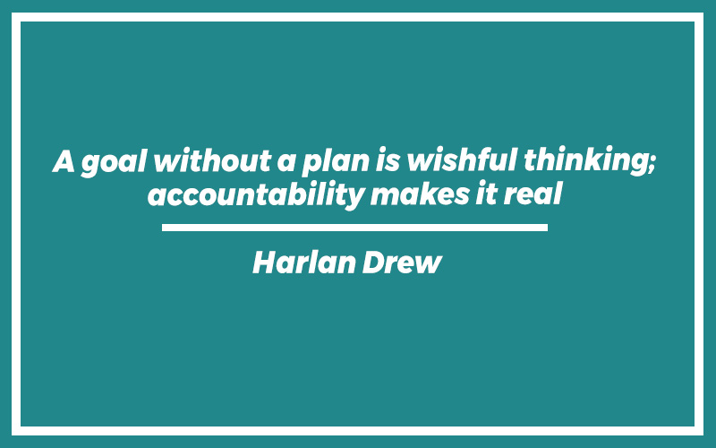 “A goal without a plan is wishful thinking; accountability makes it real.” – Harlan Drew