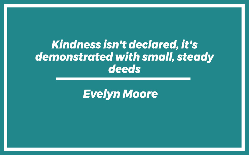 “Kindness isn’t declared, it’s demonstrated with small, steady deeds.” – Evelyn Moore