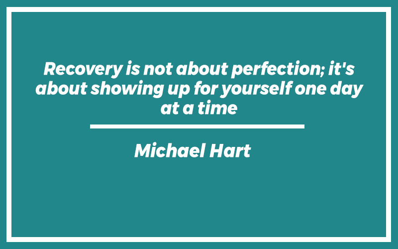 “Recovery is not about perfection; it’s about showing up for yourself one day at a time.” – Michael Hart