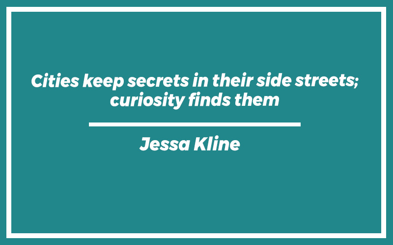 “Cities keep secrets in their side streets; curiosity finds them.” – Jessa Kline