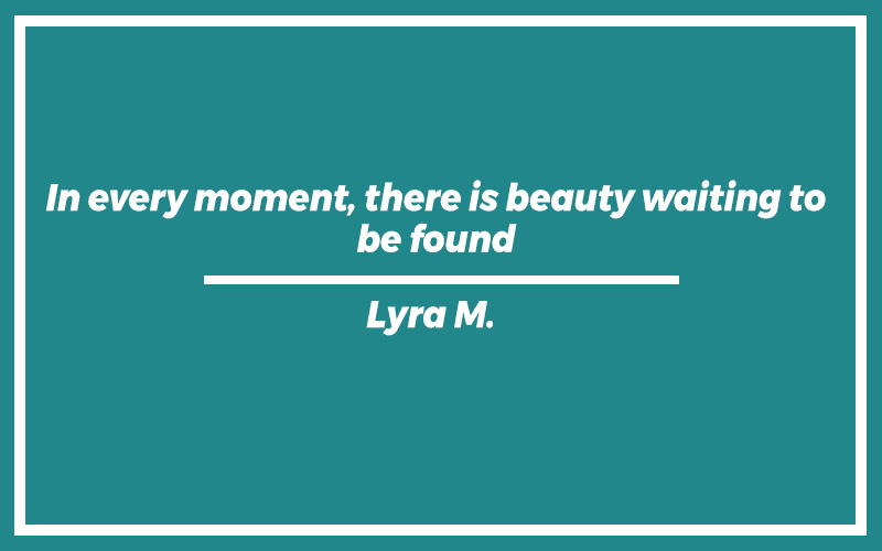 “In every moment, there is beauty waiting to be found.”Lyra M.