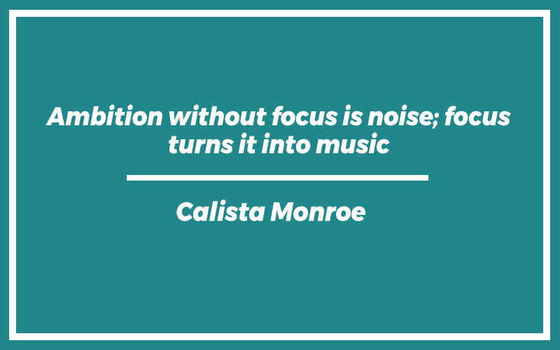 “Ambition without focus is noise; focus turns it into music.” – Calista Monroe