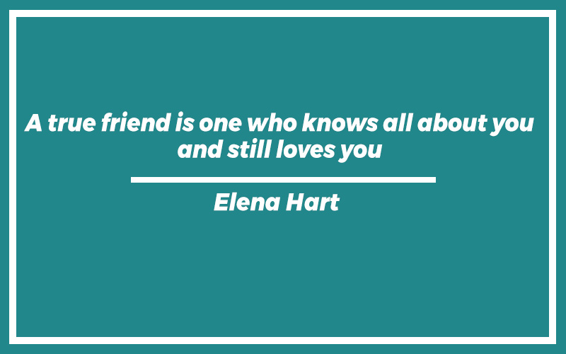“A true friend is one who knows all about you and still loves you.” – Elena Hart