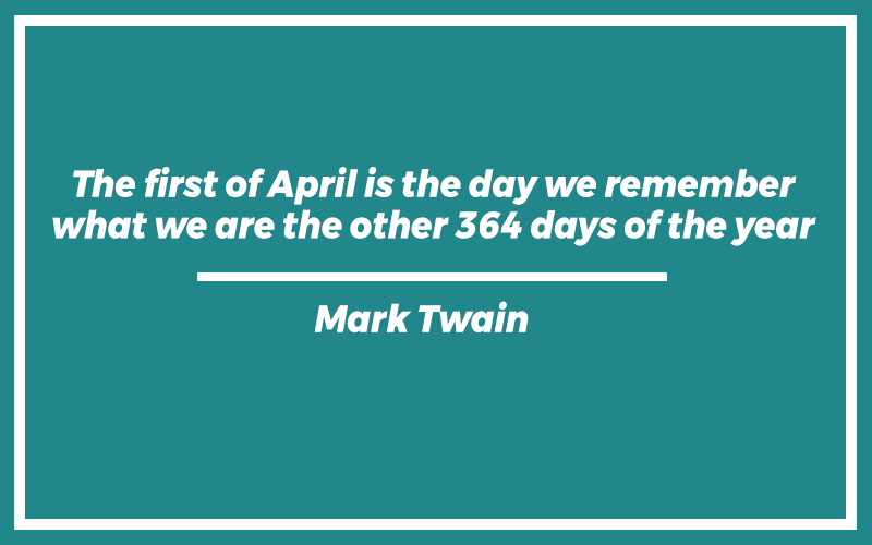 “The first of April is the day we remember what we are the other 364 days of the year.” – Mark Twain