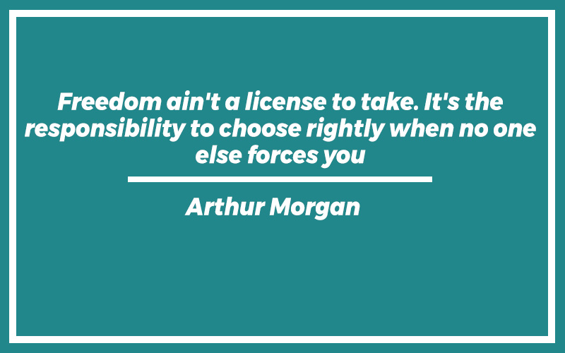 “Freedom ain’t a license to take. It’s the responsibility to choose rightly when no one else forces you.” – Arthur Morgan