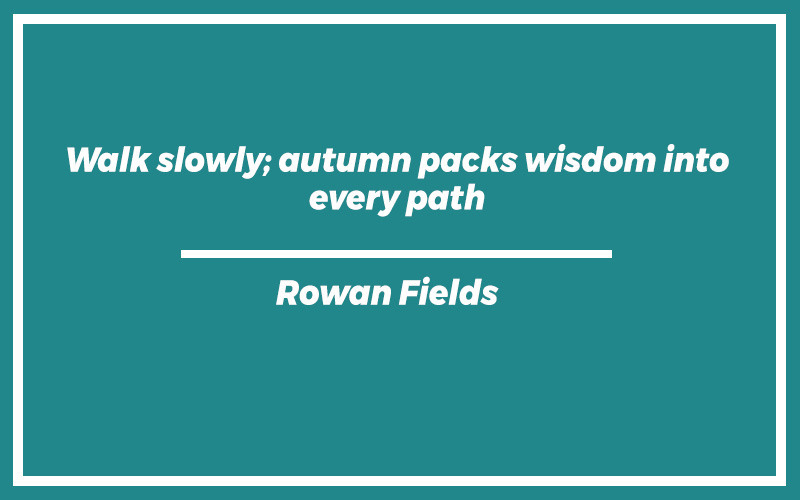 “Walk slowly; autumn packs wisdom into every path.” – Rowan Fields