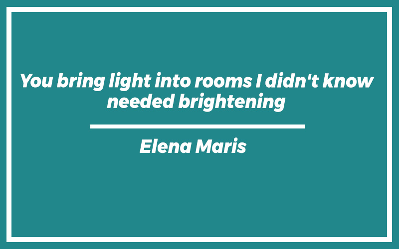 “You bring light into rooms I didn’t know needed brightening.” – Elena Maris