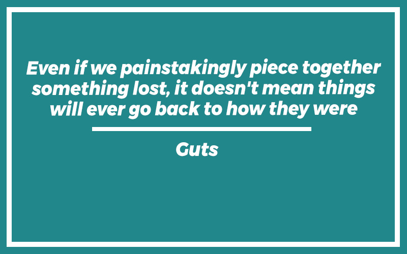 “Even if we painstakingly piece together something lost, it doesn’t mean things will ever go back to how they were.” – Guts