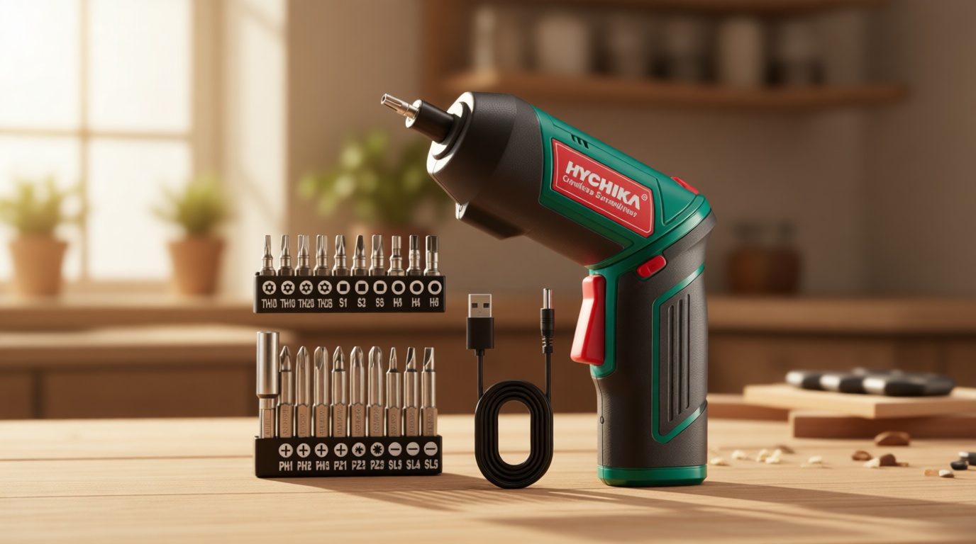 The HYCHIKA Electric Screwdriver offers a strong mix of value and practicality, with 6N.m, a 2000mAh 3.6V battery, 20 accessories, work light, charging cable, and magnetic chuck.