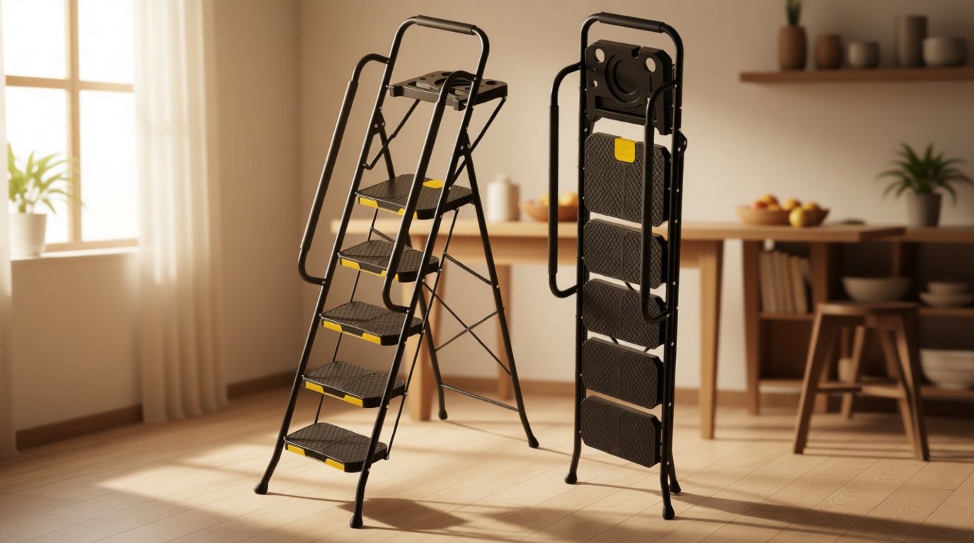 For many homes, a folding step ladder or a multi-position ladder works best because it balances reach, stability, and storage convenience.