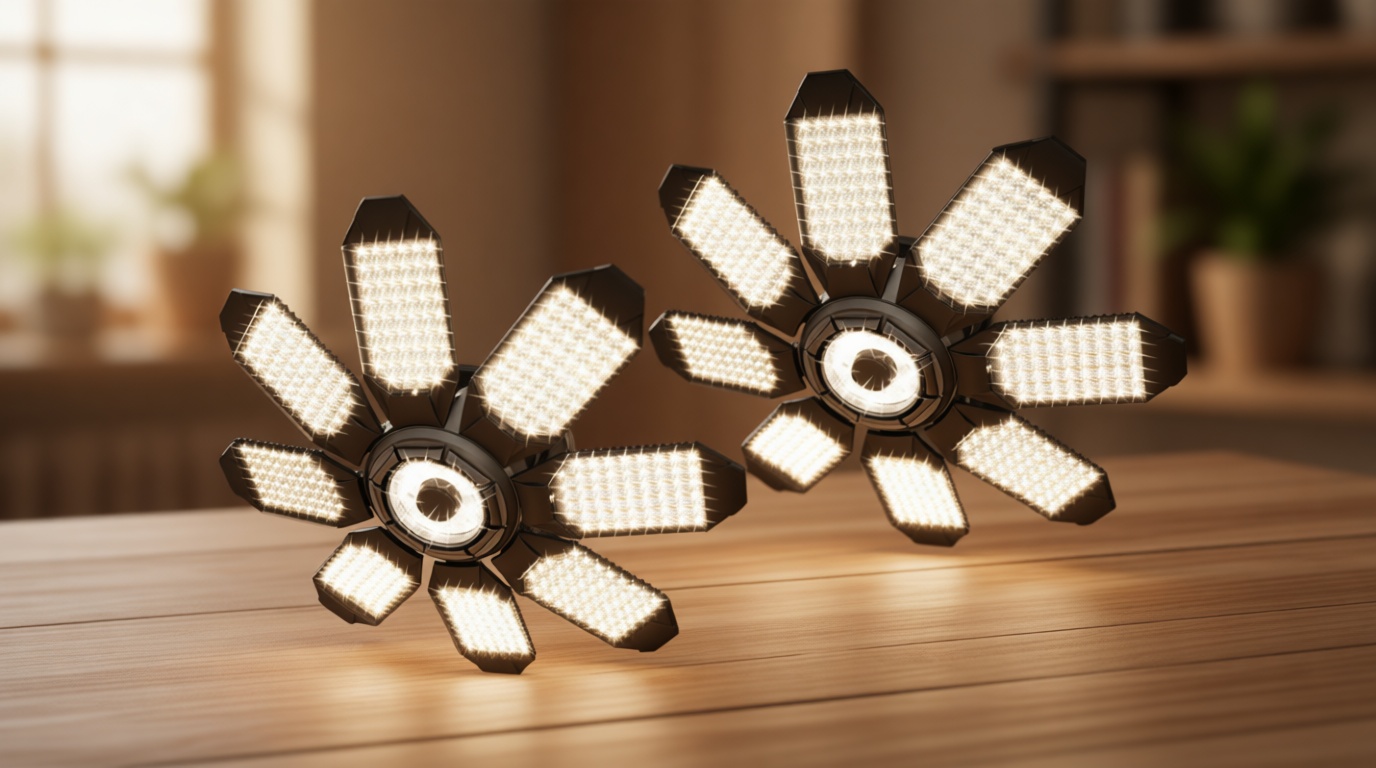 The 6+1 deformable panel layout gives the light more coverage potential, which may help reduce dark spots in a garage. This style is especially useful for general utility lighting, storage, and workshop tasks.