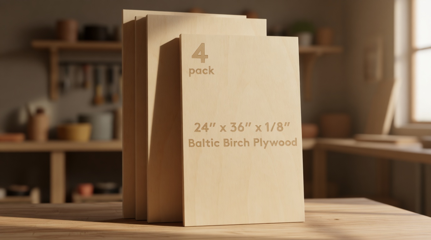 Baltic Birch Plywood 24 x 36 x 1/8 Inch gives you a large-format sheet in a thin profile. The pack of four makes it especially useful when you need multiple matching boards for a project series.