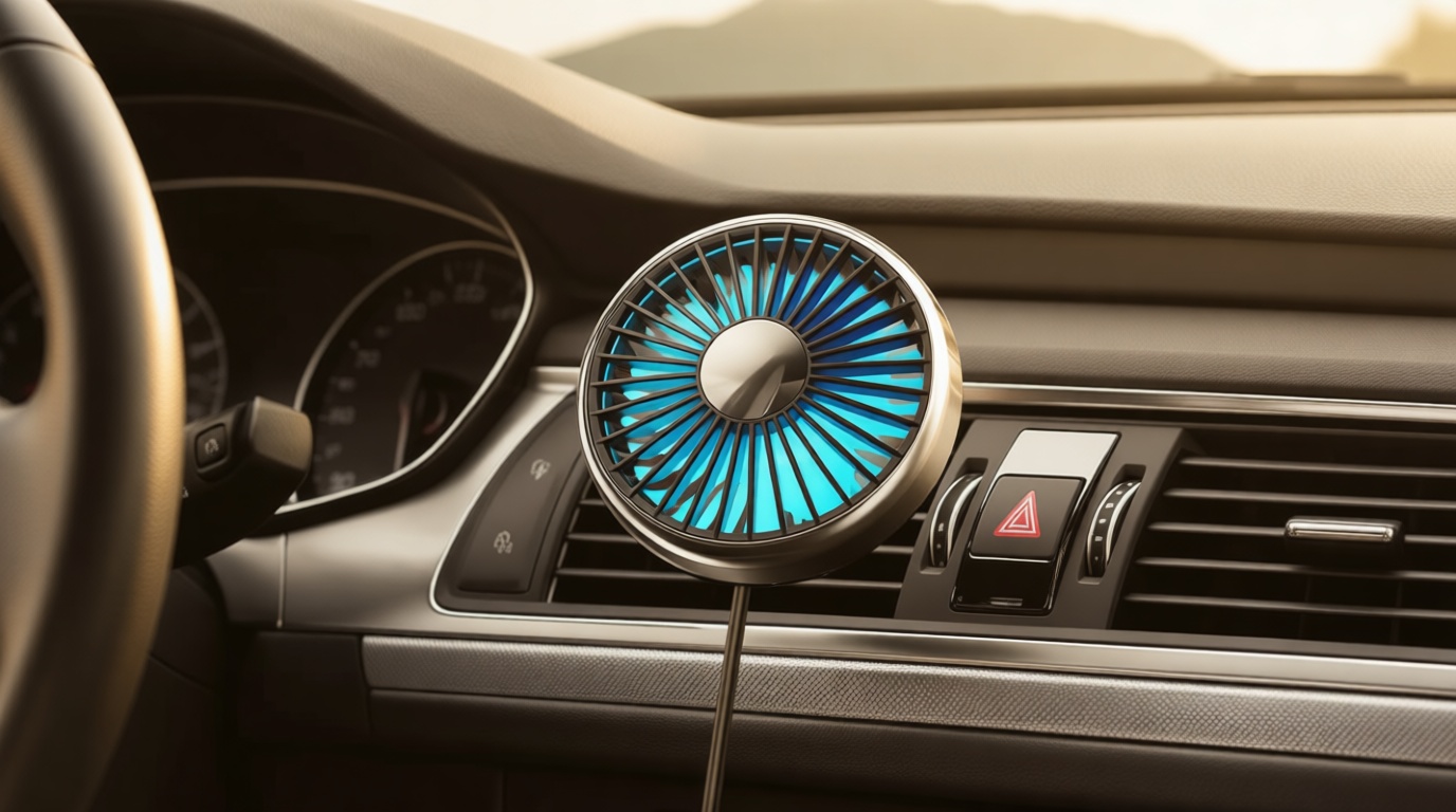 Fans with clip-on or vent-mounted designs are often the easiest to use in cars. Evaporative coolers can also be helpful if you want a more personal cooling effect.