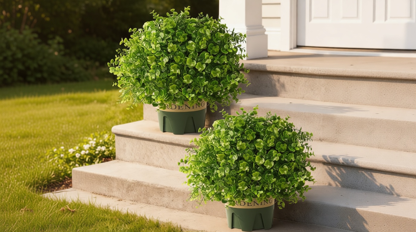The set of 2 and included pot design make it easy to place as a paired porch display. It’s a good match for shoppers who want something neat and neutral rather than bright or highly ornamental.