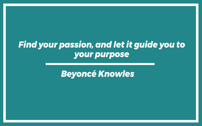 “Find your passion, and let it guide you to your purpose.” – Beyoncé Knowles