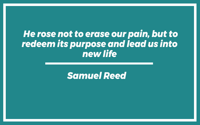 “He rose not to erase our pain, but to redeem its purpose and lead us into new life.”Samuel Reed