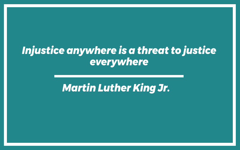 “Injustice anywhere is a threat to justice everywhere.”Martin Luther King Jr.