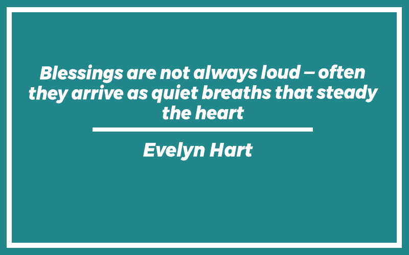“Blessings are not always loud — often they arrive as quiet breaths that steady the heart.” – Evelyn Hart