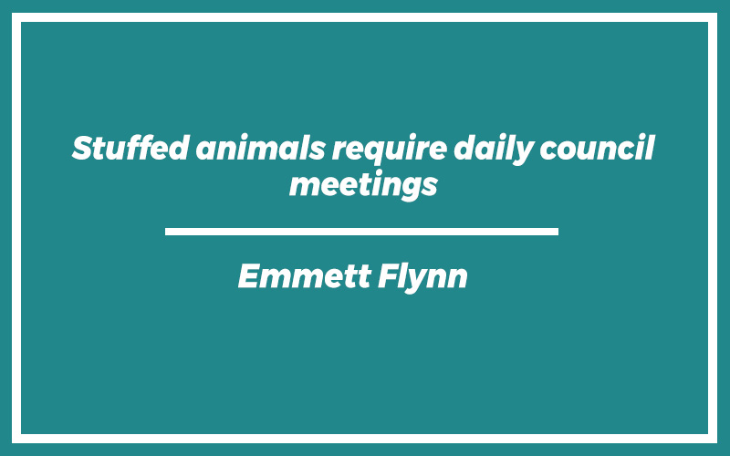 “Stuffed animals require daily council meetings.” – Emmett Flynn