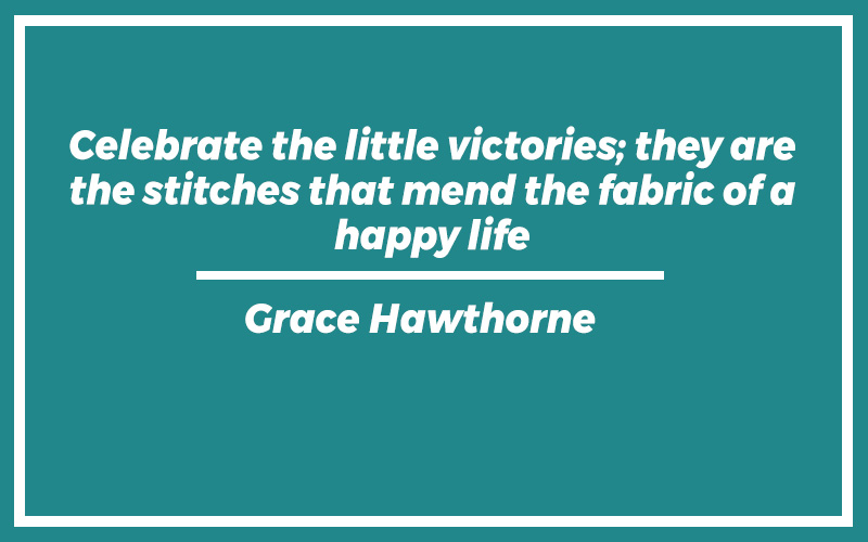 “Celebrate the little victories; they are the stitches that mend the fabric of a happy life.” – Grace Hawthorne