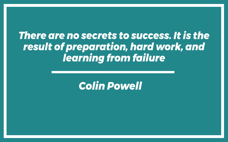 “There are no secrets to success. It is the result of preparation, hard work, and learning from failure.” – Colin Powell