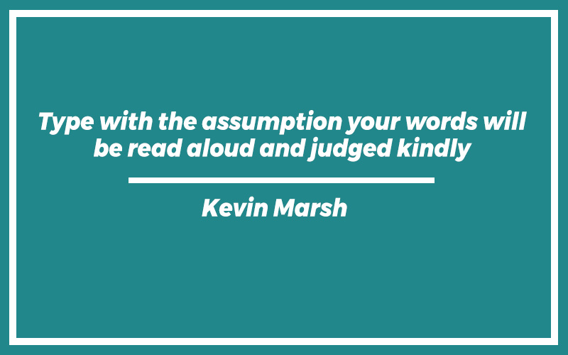 “Type with the assumption your words will be read aloud and judged kindly.”Kevin Marsh