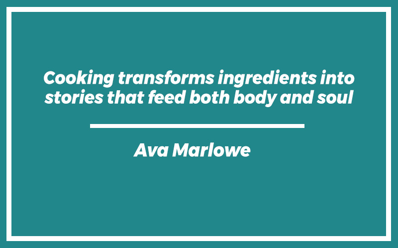 “Cooking transforms ingredients into stories that feed both body and soul.”Ava Marlowe