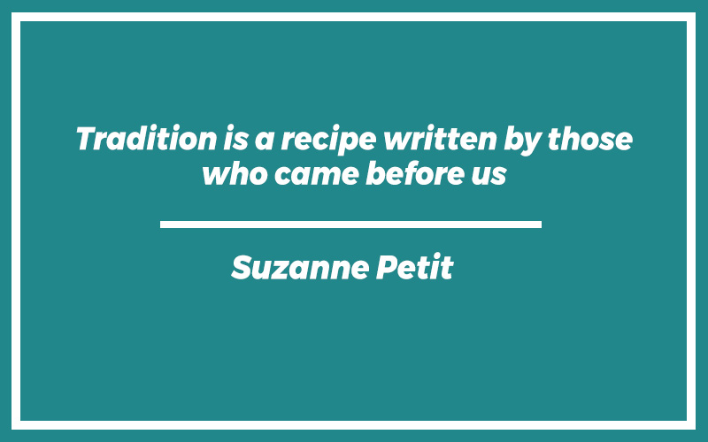 “Tradition is a recipe written by those who came before us.”Suzanne Petit