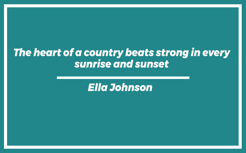 “The heart of a country beats strong in every sunrise and sunset.”Ella Johnson