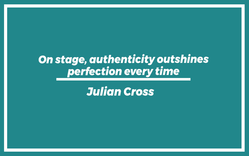 “On stage, authenticity outshines perfection every time.”Julian Cross
