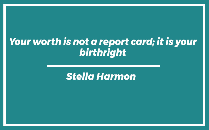 “Your worth is not a report card; it is your birthright.” – Stella Harmon