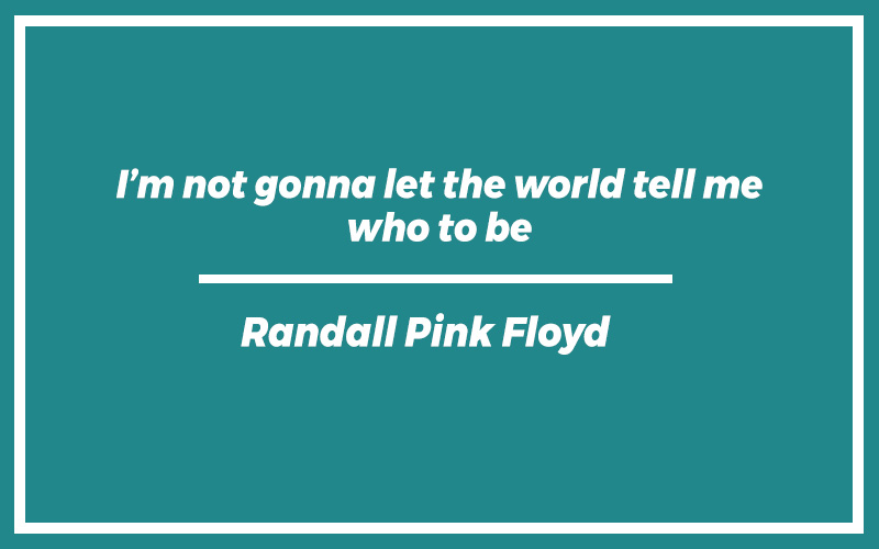 “I’m not gonna let the world tell me who to be.” – Randall Pink Floyd