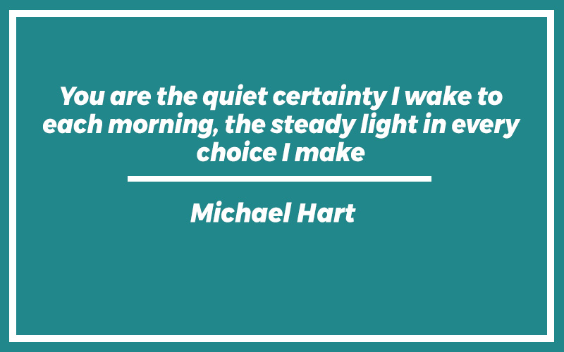 “You are the quiet certainty I wake to each morning, the steady light in every choice I make.”Michael Hart