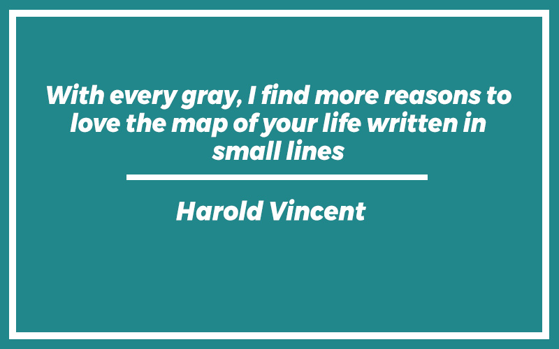 “With every gray, I find more reasons to love the map of your life written in small lines.”Harold Vincent
