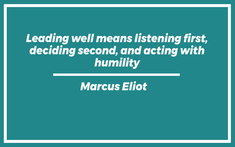“Leading well means listening first, deciding second, and acting with humility.” – Marcus Eliot