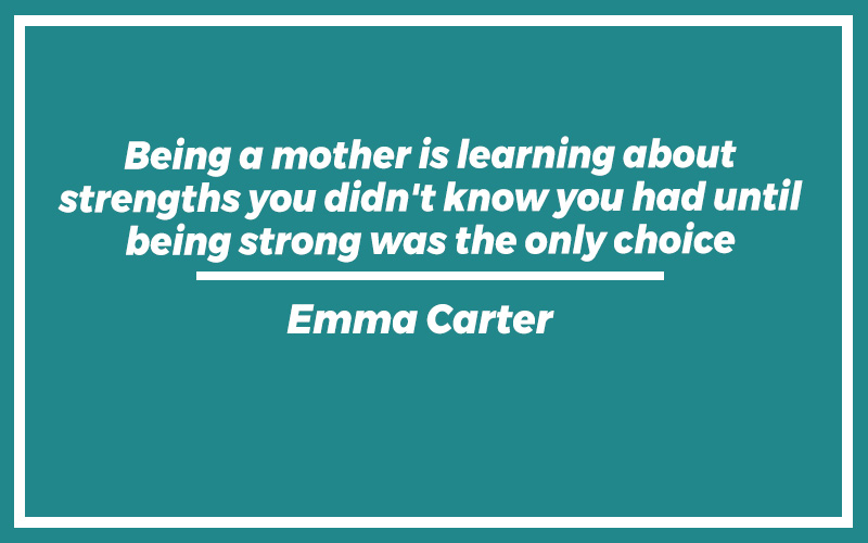 “Being a mother is learning about strengths you didn’t know you had until being strong was the only choice.” – Emma Carter