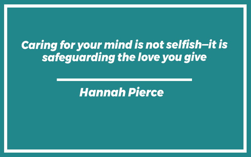 “Caring for your mind is not selfish—it is safeguarding the love you give.” – Hannah Pierce