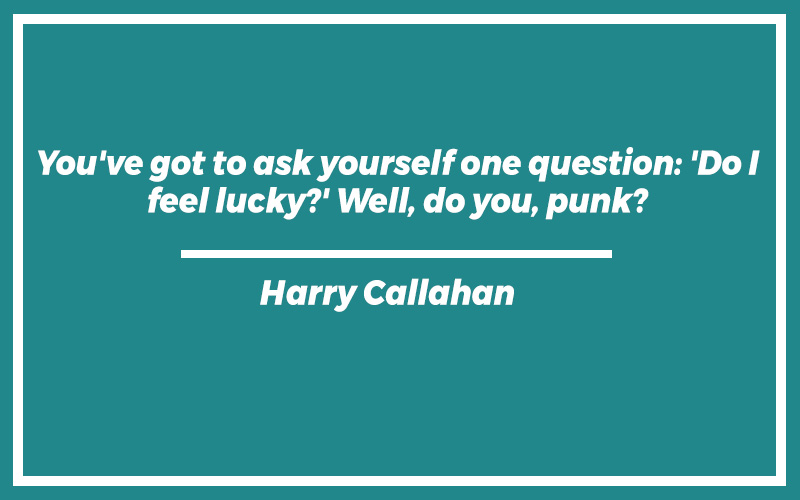 “You’ve got to ask yourself one question: ‘Do I feel lucky?’ Well, do you, punk?”Harry Callahan