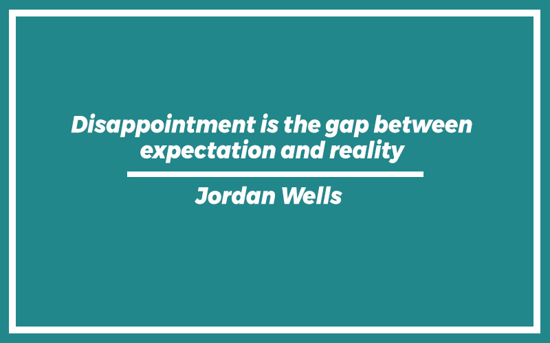 “Disappointment is the gap between expectation and reality.” – Jordan Wells