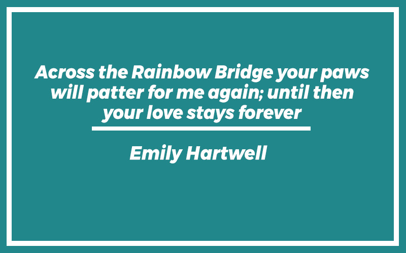“Across the Rainbow Bridge your paws will patter for me again; until then your love stays forever.”Emily Hartwell