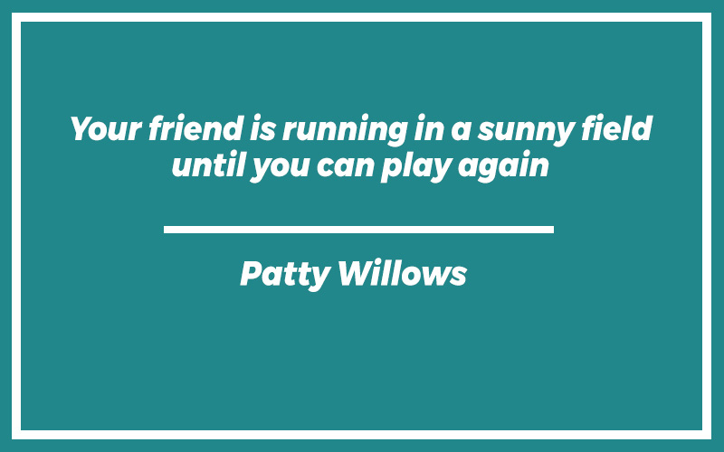“Your friend is running in a sunny field until you can play again.”Patty Willows
