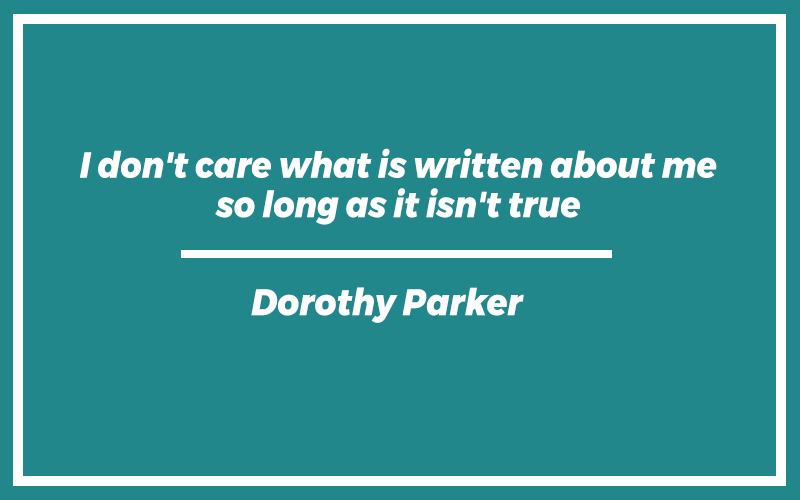 “I don’t care what is written about me so long as it isn’t true.” – Dorothy Parker