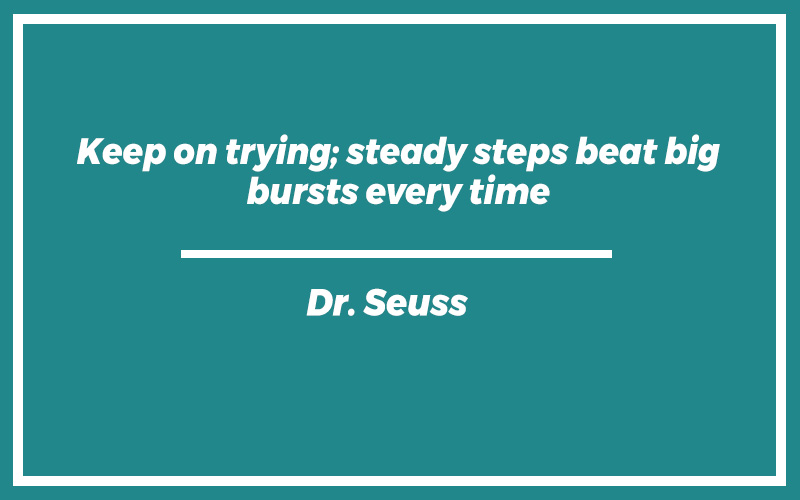 “Keep on trying; steady steps beat big bursts every time.” – Dr. Seuss