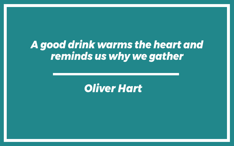 “A good drink warms the heart and reminds us why we gather.” – Oliver Hart