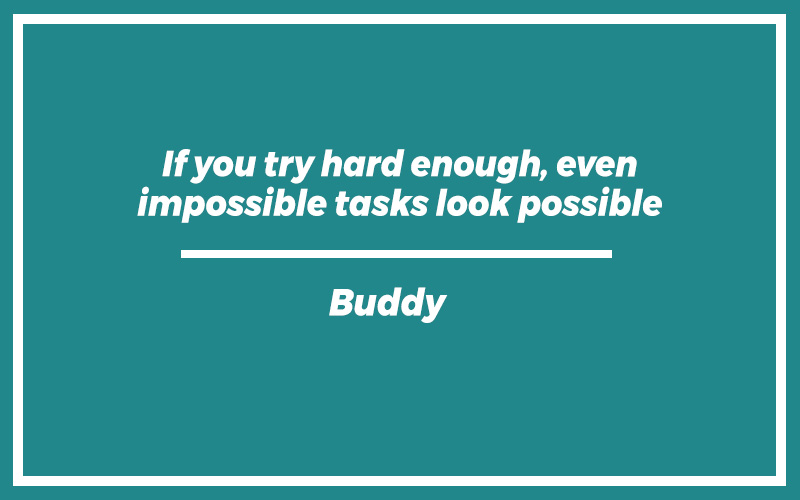 “If you try hard enough, even impossible tasks look possible.”Buddy