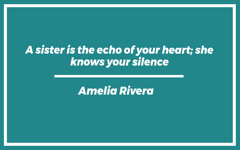 “A sister is the echo of your heart; she knows your silence.” – Amelia Rivera