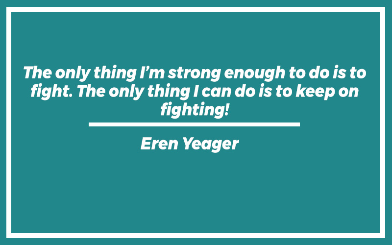 “The only thing I’m strong enough to do is to fight. The only thing I can do is to keep on fighting!” – Eren Yeager