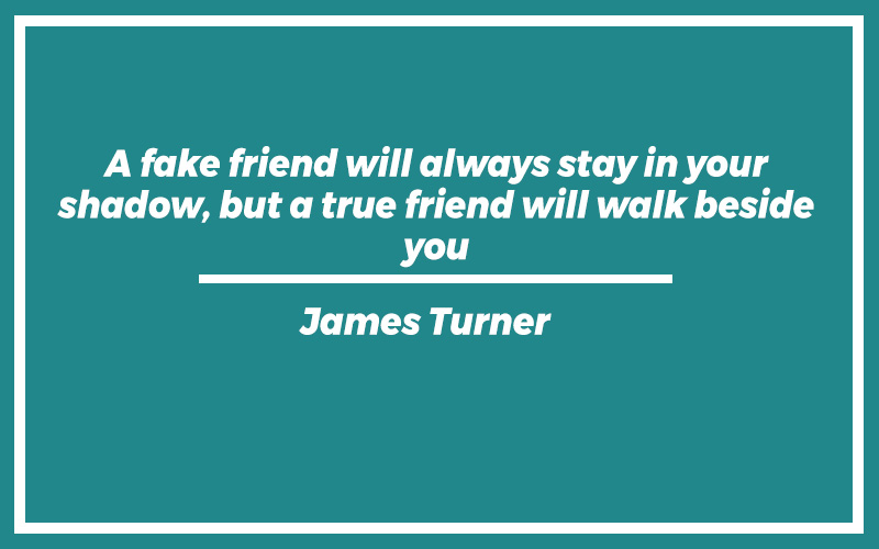 “A fake friend will always stay in your shadow, but a true friend will walk beside you.” – James Turner