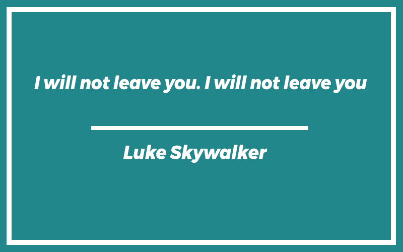 “I will not leave you. I will not leave you.”Luke Skywalker