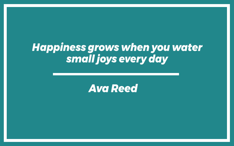 “Happiness grows when you water small joys every day.” – Ava Reed